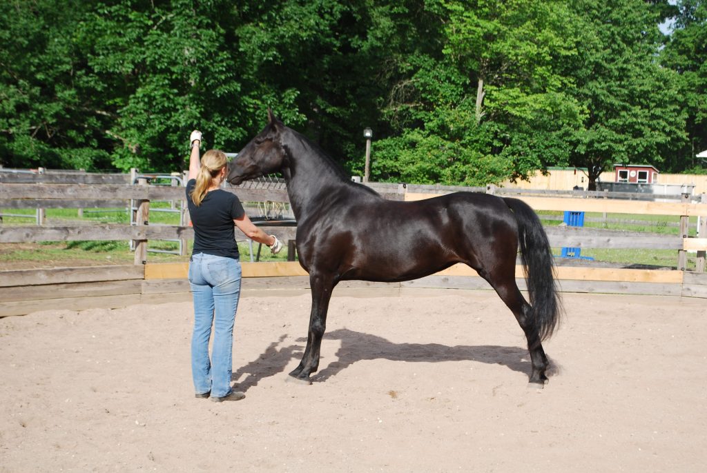 When Diana eventually graduated high school and got a full-time job, the first thing she did was buy her own horse. The night Diana brought home E.B. Brass Buttons, a registered 7-year-old liver chestnut Morgan, she couldn’t believe that finally, she was the lucky girl with her very own horse. Diana’s determination and work ethic led her to watch every video, attend every clinic, and take every lesson she could. Diana also volunteered for her local veterinarian, Dr. Clifford Morcum, and accompanied him on many large animal farm calls. She taught hunt seat riding lessons to beginners in Wilbraham. Diana’s mom purchased a registered Arabian horse, CJ King Rana. While Diana trained C.J., she apprenticed with Karen Dodge and showed C.J. on the Arabian circuit. Over the years, Diana became a self-made equine expert with the help of amazing teachers such as Trudy Wessel, a coach for the US Equestrian Team, and highly skilled Morgan trainers such as Chuck Livingston, Cindy Mugnier, and Judy Nason. Diana will forever have deep gratitude for the generosity of these trainers in openly sharing their wealth of knowledge which made her able to gain the skills to compete at a high level in in the Morgan world and to eventually breed and train her own horses.